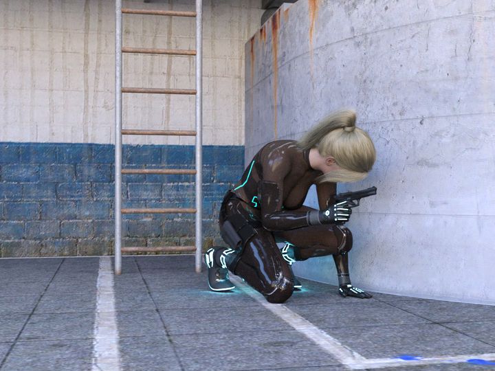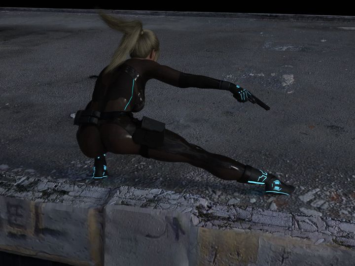 废弃大楼的楼顶,昏暗的夜色下,一名持枪守卫正无聊地打着哈欠。恍惚间,一条穿着紧身衣的纤细手臂已经悄无声息地从他脖子后方伸出。