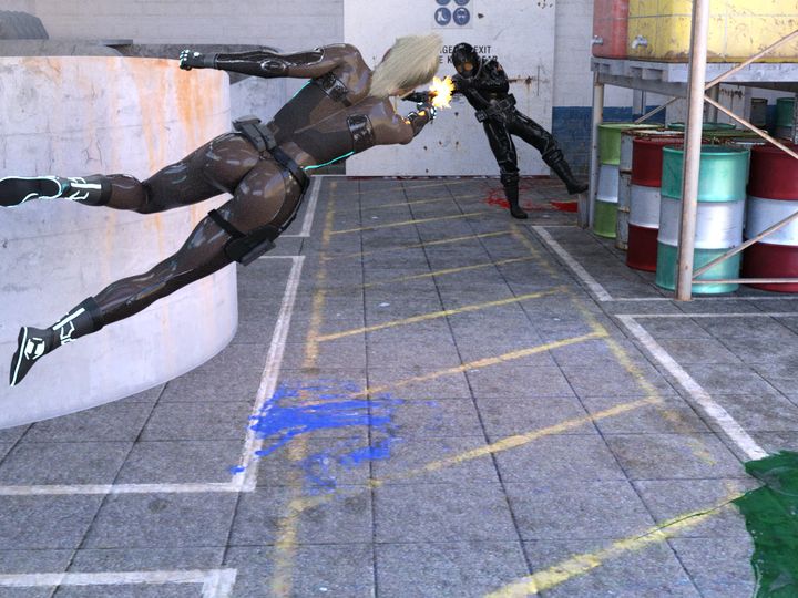 就在视野变模糊的那几秒钟,喊叫声和急促脚步声从四面八方传来,Tess 只用了几秒钟就反应过来自己中圈套了。她赶紧将手中的手枪上膛,利用残存的视野向来袭的人影开了几枪,并凭借记忆和声音逃离。